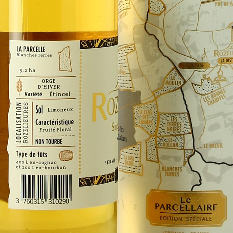Single Malt Whisky ROZELIEURES from the "BLANCHES TERRES" parcel with a silty soil, 70 cl bottle.