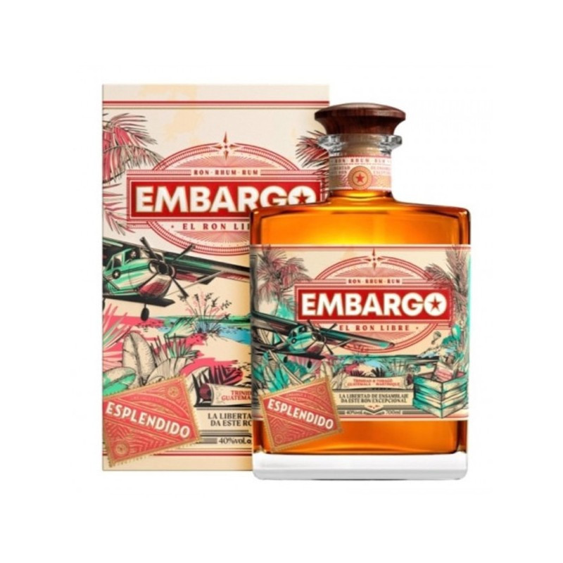 Embargo Esplendido is a blend of three different types of rum, each with its own unique character. It combines molasses rum from Trinidad & Tobago, cane honey rum from Guatemala, and agricultural rum from Martinique. This blend of rums from different origins and production methods results in a distinctive and flavorful spirit.