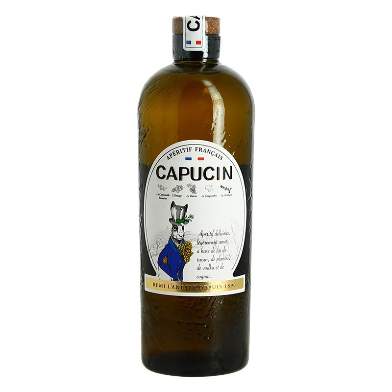Le Capucin is a herbal aperitif made from macerated plants. Its alcoholic base is a mistelle (similar to Pineau des Charentes) made from Vodka and Cognac. You'll appreciate its subtle bitterness, as well as its flavors of grapes, gentian, and orange. Serve it chilled on its own or diluted with sparkling water.