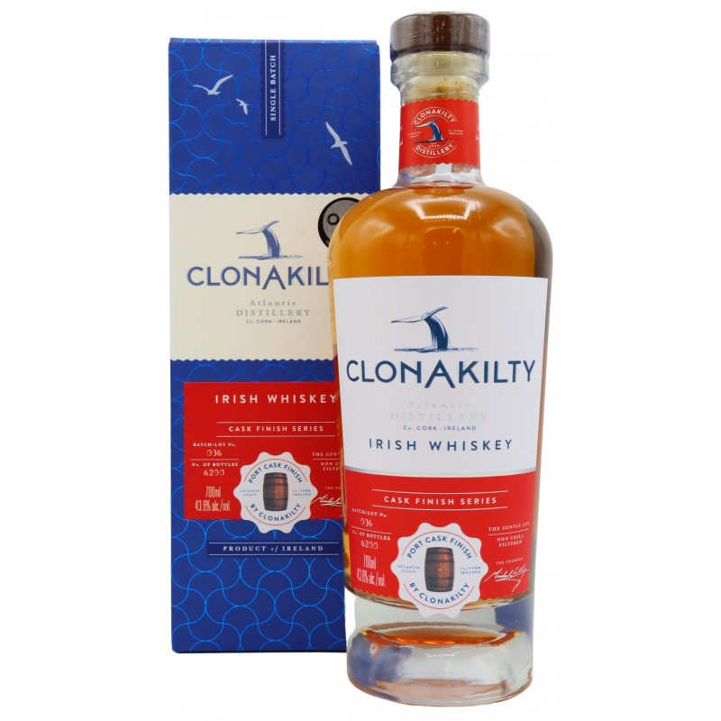 The port cask finish version of this fantastic Clonakilty Port Cask Finish Irish Whiskey combines beautiful maritime and saline notes with fruitiness imparted by the port cask finish. The triple distillation brings a lot of smoothness and suppleness. You'll enjoy the notes of peach, citrus, as well as vanilla and spices from the oak. The finish fills the mouth with hints of cardamom, citrus zest, Espelette pepper, and iodine. The maritime influence is never far away.