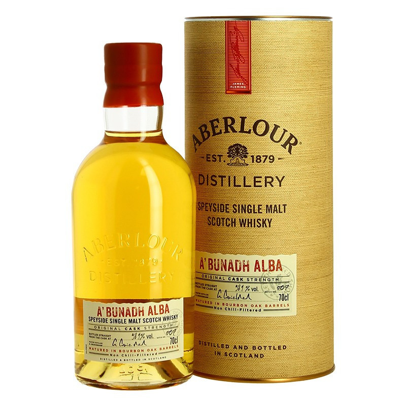 The name of this batch #7 of ABERLOUR A'BUNADH ALBA refers to two things. Firstly, to Quercus Alba, an American white oak from which the barrels used for aging this Aberlour Single Malt were made. Secondly, it alludes to the name of Scotland in Scottish Gaelic. "Alba" in Latin means white, like the very light color of American white oak tree bark.