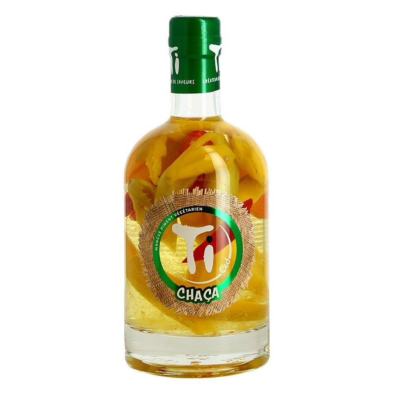 CACHACA Arrangée MANGUE PIMENT by Rhums de Ced 70 cl is a mango and chili-infused Cachaça, available in a 70 cl bottle.
