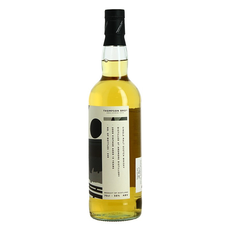 Single Malt Whisky ARDMORE 2009-2023, 13 years in a Refill barrel by THOMPSON Brothers. You will appreciate the notes of caramel, orange zest, and pepper on the nose, with a subtle hint of smoke. On the palate, you will find these spicy and peppery notes, along with orange zest, and a delicate touch of peat that adds a bit of complexity. The finish is saline, with hints of pear emerging towards the end of the tasting.