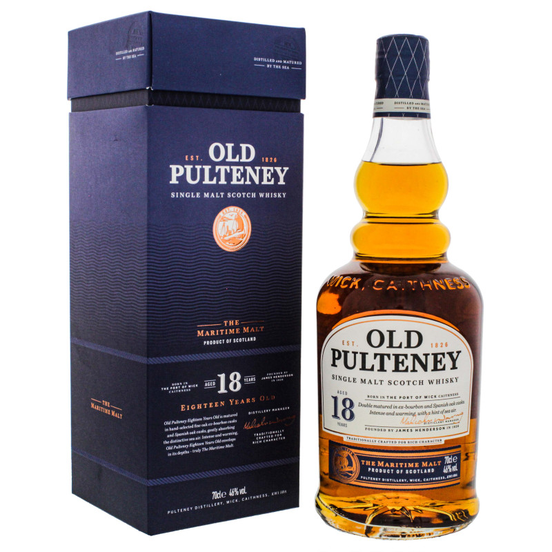 Distillery Old Puteney 18 Year Old Single Malt Whisky 46° is produced by the Old Puteney distillery in Scotland. Founded in 1798, the distillery is currently run by the Old Puteney family, who continue the distilling traditions of the region. The distillery covers several hectares and produces a varied range of single malt whiskies.