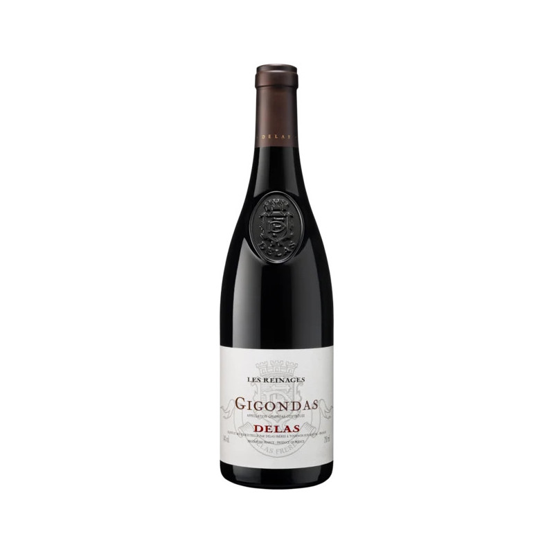 Delas Frères' GIGONDAS Les REINAGES 2021 is a seductive blend of 80% Grenache and 20% Syrah. The Grenache offers aromas of morello cherry and generous roundness, while the Syrah brings peppery notes and an elegant structure.