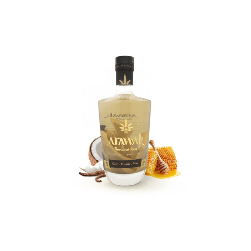 Arawak Coconut Vanilla Honey Flavoured Rum is a handcrafted creation that transports your senses to the tropics, thanks to a harmonious blend of fresh coconut, Madagascan vanilla and golden honey. This rum, infused with passion, embodiesthe spirit of the Caribbean and the expertise of Arawak, which selects natural ingredients to create authentic and generous flavours.