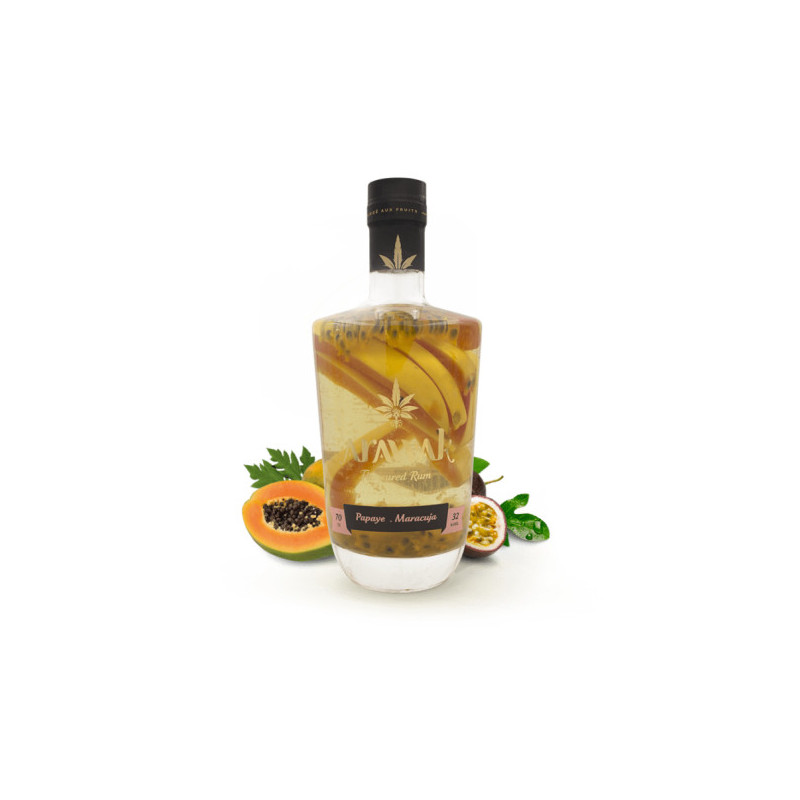 This exotic rum is perfect for summer aperitifs, evenings with friends or moments of relaxation. It pairs wonderfully with fruity cocktails (such as a Papaya Ti’ Punch or a Passion Fruit Mojito) or light desserts (such as a fruit salad or coconut ice cream). Best enjoyed at 8–10°C, it embodies the freshness andauthenticity of Arawak flavoured rums, for lovers of fruity and well-balanced spirits.