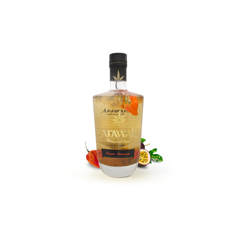 Arawak Piment Maracuja Flavoured Rum is an artisanal creation that blends tangy passion fruit and fresh chilli, two iconic Caribbean ingredients. This rum, carefully macerated, embodiesthe festive spirit of the Caribbean and the expertise of Arawak, which selects fresh, intense ingredients to create authentic and vibrant flavours. Every sip is an invitation to travel, balancing fruity sweetness with spicy warmth for a unique sensory experience.