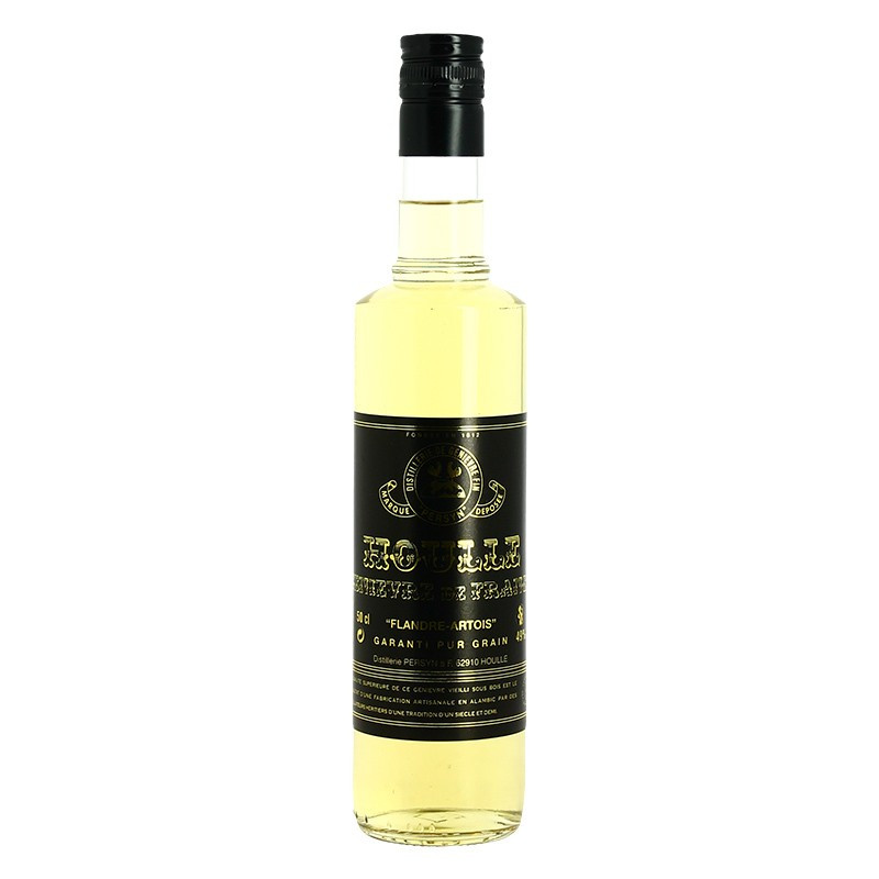 Juniper de Houlle Carte Noire is THE digestive par excellence. With a strong and pronounced taste, it nevertheless remains quite mellow. Served chilled, its aromas of grain, wood and juniper berry explode on the palate offering a persistent and pleasant taste. 50cl bottle.