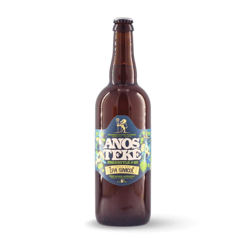 Anosteke Freestyle #20 Simcoe IPA is a good choice for lovers of hoppy craft beers. Its aromas of hops, tropical fruit and pine, complemented by citrus notes, make it a balanced and flavoursome beer. Ideal for evenings out with friends or just relaxing.