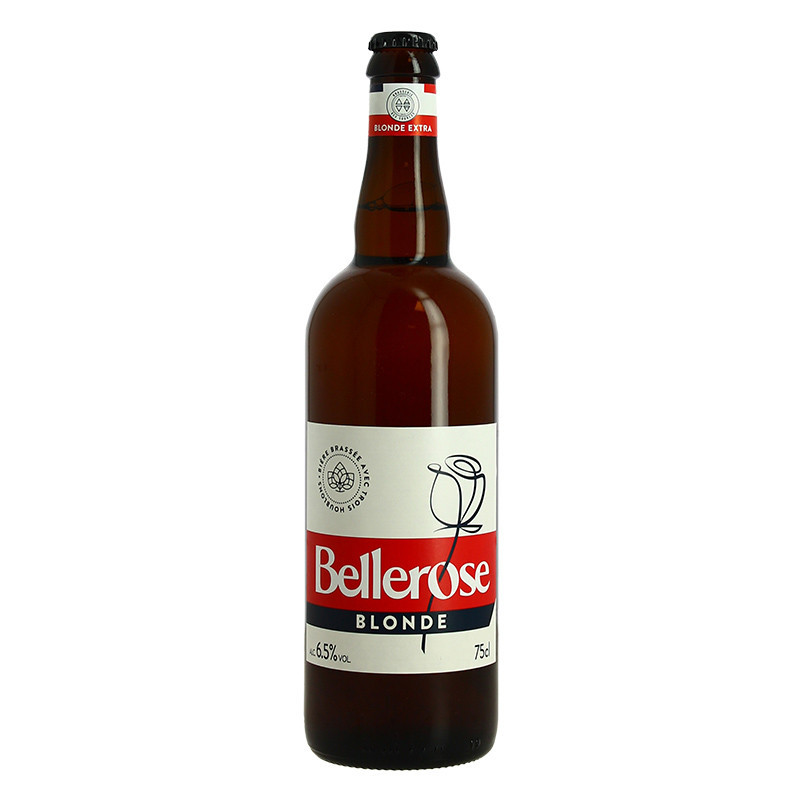 BELLEROSE Bière Blonde de Garde 75cl, Bellerose draws its inspiration from the 1950s, when the beers were still generously hopped and refreshing. The use of an expert cocktail of 3 hops gives the Bellerose aging beer an original flavor with notes of citrus, lychee and a very fresh finish. Bellerose, an extra light beer brewed at the Brasserie des Sources.