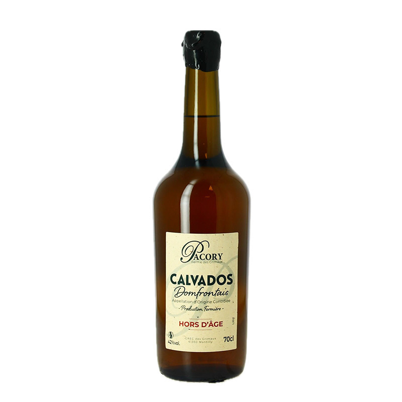 CALVADOS PACORY DOMFRONTAIS HORS D'AGE is a premium calvados distinguished by its finesse and complex aromas. This calvados is the result of a meticulous distillation process and careful ageing, giving it a unique depth. The Calvados Hors d'Age is aged in old casks for 4 years. It is then placed in larger casks. Every year since 1992, new 8-year-old barrels have been added to the rest of the casks dedicated to Hors d'Age.