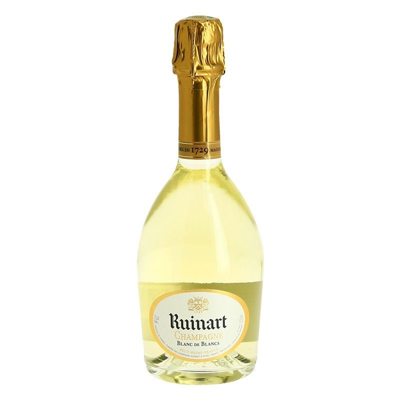 A white and white Ruinart champagne 100% chardonnay. Bright pale gold color with green reflections, fine and light bubbles, delicate and persistent. The nose of this Ruinart champagne is marked by fresh fruits, mainly citrus and pineapple, notes of white flowers and spices very fine Blanc de Blancs champagne, pure, clean and precise. Supple, fleshy attack, refreshing finish with notes of white peaches and citron