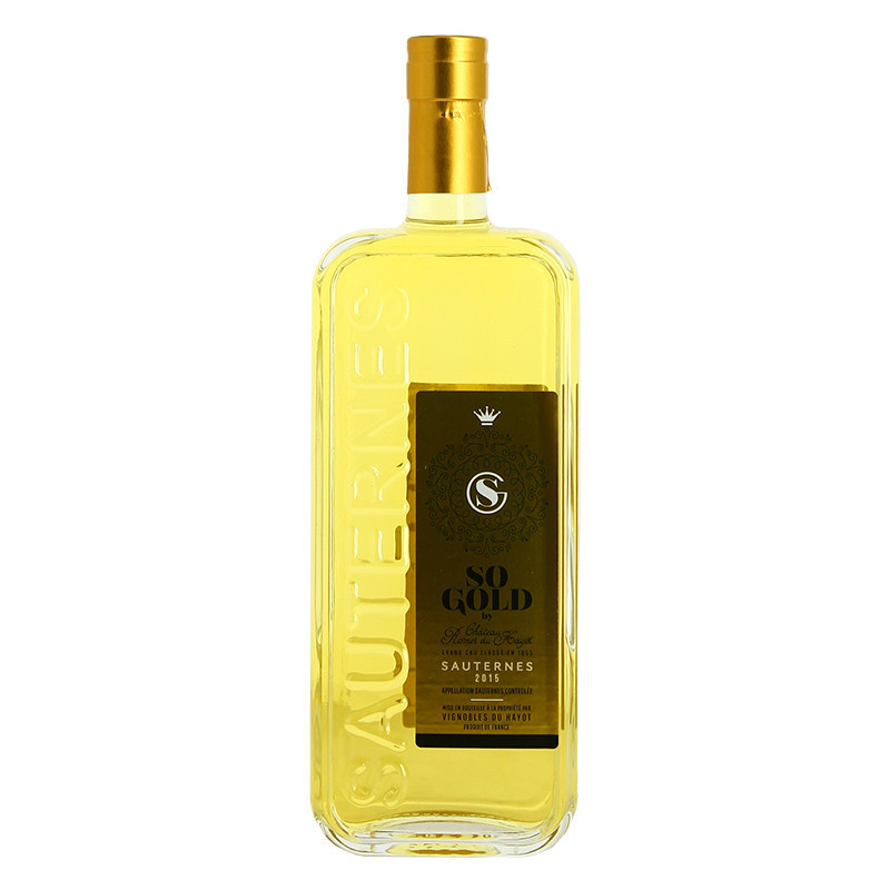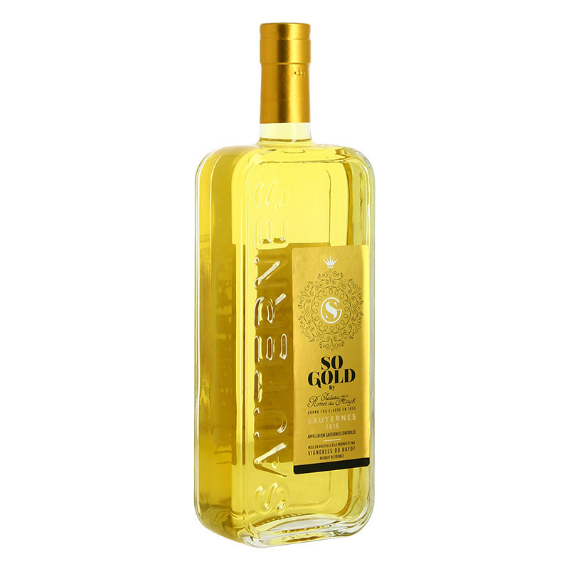 Sauternes SO GOLD 2015, it is often said that Sauternes is liquid gold. Here is this beverage in a Ingot-shaped bottle.