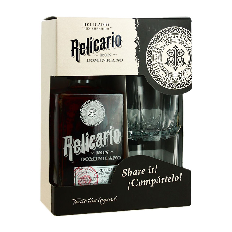 RELICARIO Rum GIFT SET + 2 Glasses, amber rum from the Dominican Republic