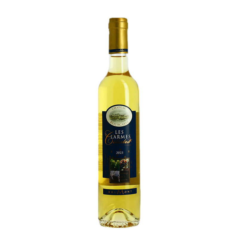 Les Larmes Célestes 2023 is an original cuvée of sweet Pacherenc, produced by a second selection when the three stages of the late harvest did not meet Alain Brumont's criteria (Vendémiaire, Brumaire and Frimaire). This wine is made mainly from Petit Manseng grapes grown on 30 to 50 year-old vines planted on clay-limestone soils. Fermentation takes place in vats at 18°C, followed by ageing on fine lees for 6 months. The result is a highly aromatic wine, with discreet sweetness balanced by rich acidity, offering finesse, lightness and elegance.