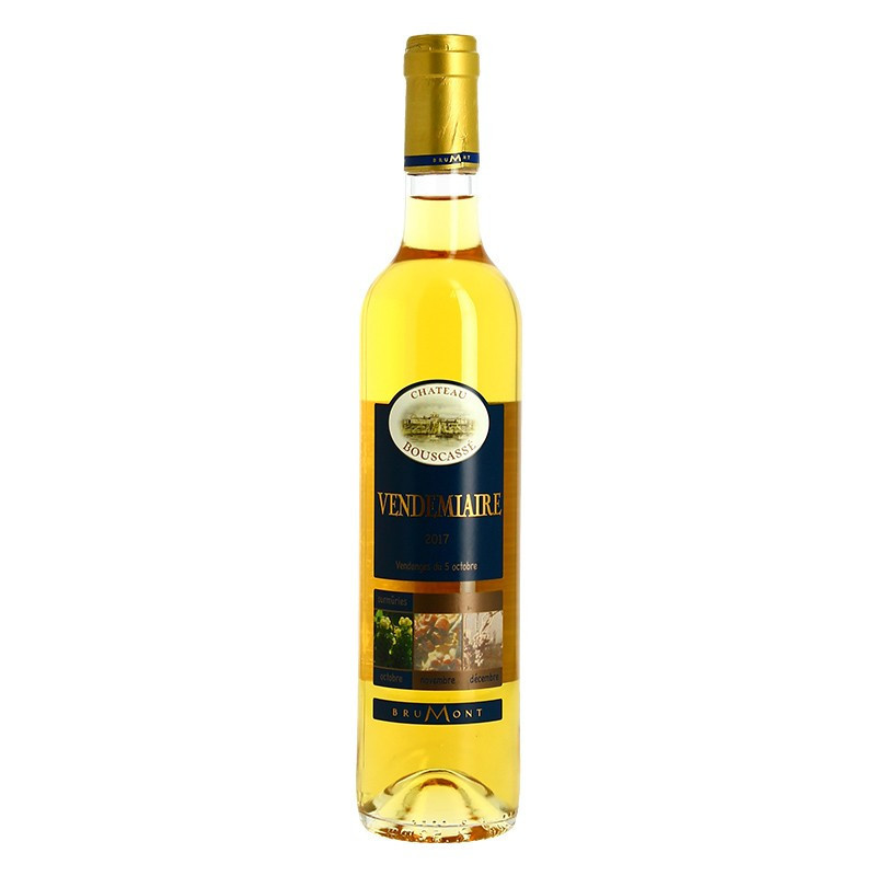Vendemiaire from Château Bouscassé is a sweet white wine with fruity aromas and floral notes. On the palate, it is soft and round, with a slightly acidic finish that perfectly balances the sweetness. Flavours of peach, pear and apricot dominate, giving a sensation of freshness and liveliness. Each sip reveals nuances of white flowers and honey, with a slightly acidic touch that perfectly balances the fruit aromas. Alain Brumont and his team have produced an excellent sweet white wine.