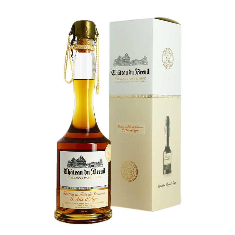 Château du Breuil's 8-year-old Calvados, finished in Sauternes casks, is truly an exceptional eau-de-vie. Aged in oak barrels for 8 years, this Calvados is then refined in Sauternes casks. This Calvados offers complex notes of apple, vanilla, and honey, with a touch of sweetness from the Sauternes. Its long, elegant finish makes it an ideal choice for lovers of refined spirits.