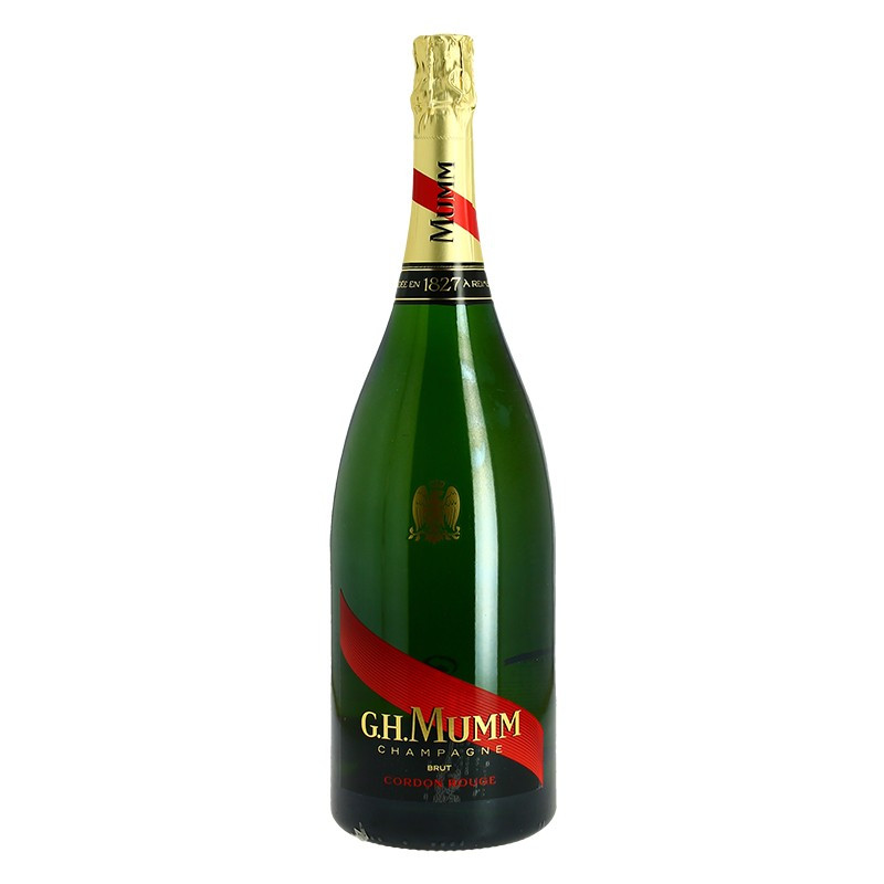 This Champagne G H Mumm Red Cordon Brut in Magnum is a Champagne with gourmet and fruity aromas. At the disposal of the cellar master there are no less than 77 crus, all unique.The final assembly: predominance of Pinot Noir, strong presence of Chardonnay and touch of miller. To complete the blend and ensure consistency of style, the Chef de Caves integrates 25 to 30% of reserve wines. In 1876, Georges Hermann Mumm paying tribute to the cuvée that made the reputation of the House, decided to decorate the bottle with a red silk ribbon, a sign of the Royal Order of Saint-Louis and the Grand Cordon of the Legion d 'honor