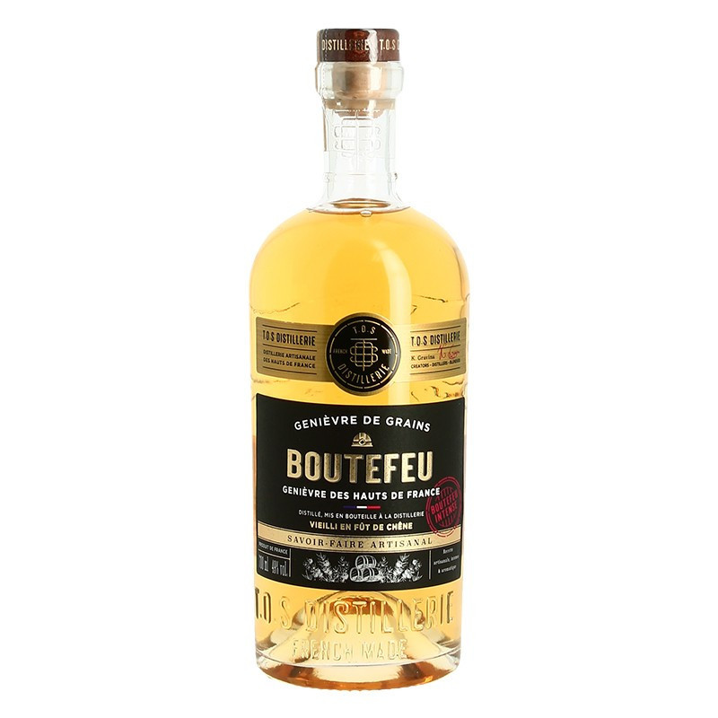 BOUTEFEU Intense Juniper 70 cl. This juniper obtained by distillation of a must made from rye and barley. First, the juniper berries and the distillate macerate together before a second distillation. The alcohol thus obtained is then left to age in oak barrels.