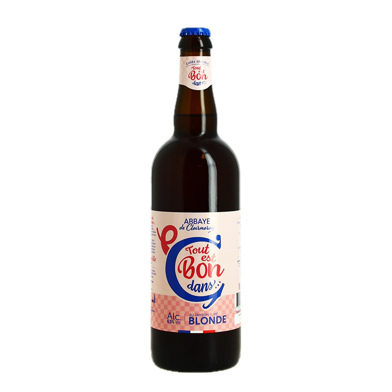 "Tout est Bon dans le Cochon" ( everything is good in the pig) from Clairmarais Abbey is a unique blond beer infused with smoked ham. This craft beer offers a singular taste experience, combining smoky notes and malty flavours. Ideal for lovers of bold beers and fine charcuterie.