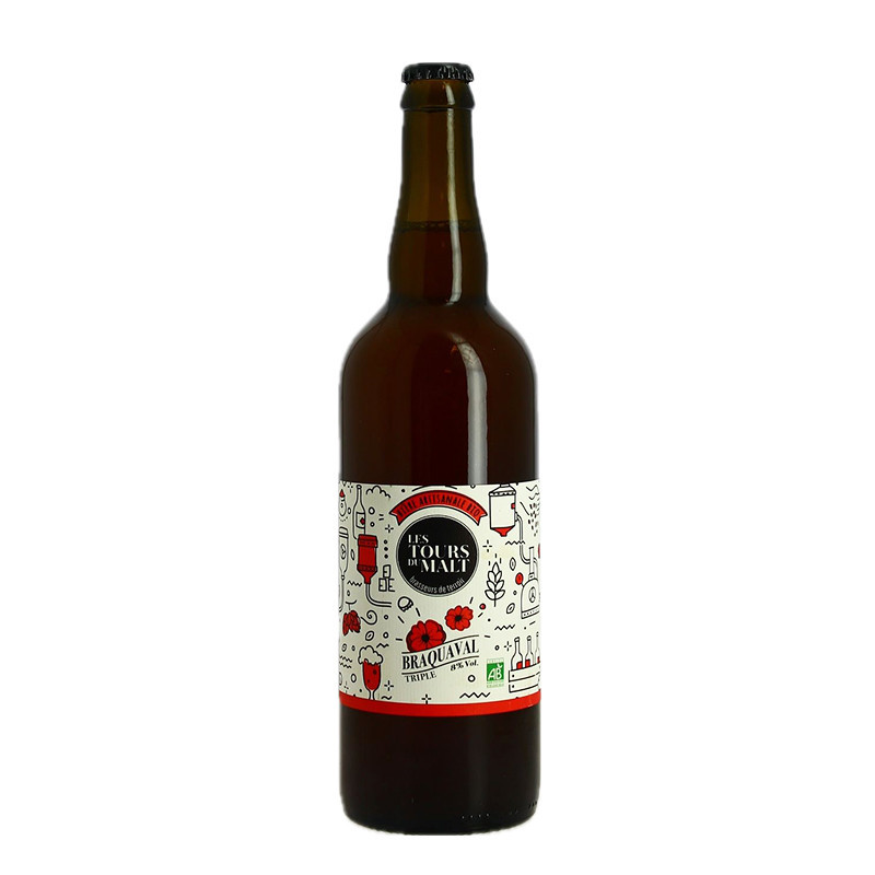 BRAQUAVAL Organic Triple Beer with Poppy Infusion 75 cl by Les Tours du Malt Brewery. You'll love its fine nose with notes of the poppy used in brewing. The palate is malty, slightly floral, acidulous and very slightly bitter.