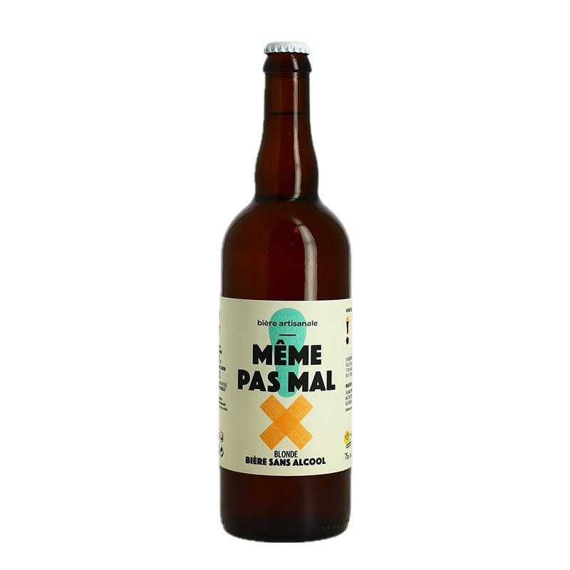 Même Pas Mal" 75cl alcohol-free beer from the Tandem brewery is an excellent option for those who want to enjoy the taste of a beer without the effects of alcohol. With just 0.5% alcohol, it is brewed with Ekuanot, Citra and Mosaic hops, offering fruity and exotic notes. The recipe, developed in collaboration with Brewing Theory, guarantees a quality craft beer that's light and thirst-quenching. Available in 75cl bottles, it's the ideal accompaniment to your meals or for a tasting session with friends.