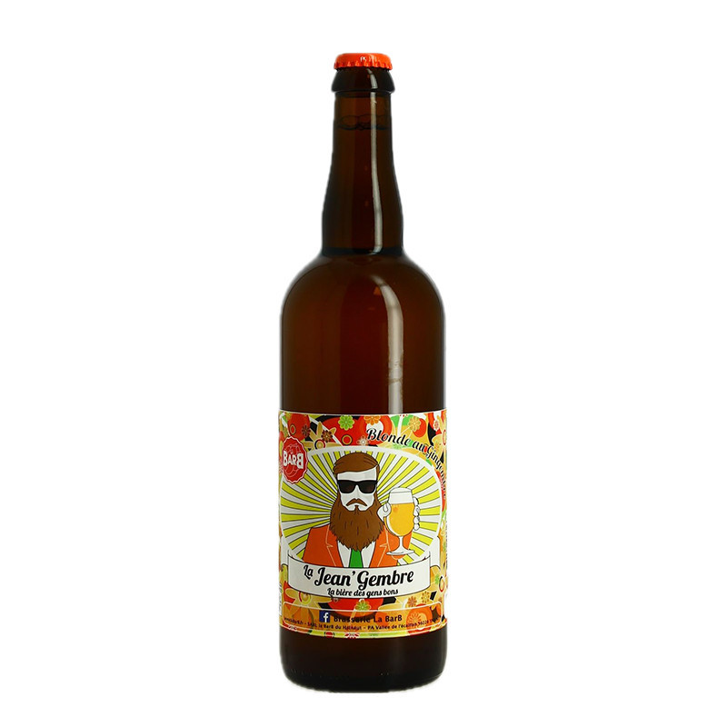 Jean'Gembre Bière Blonde au Gingembre from the BARB brewery is a unique craft beer with a perfect balance between the flavours of lager and the spicy notes of ginger. At 6% alcohol, this beer has a slightly cloudy straw-yellow colour, with a generous, stable head. Tasting reveals a dry, refreshing finish, ideal for lovers of aromatic, well-balanced beers.