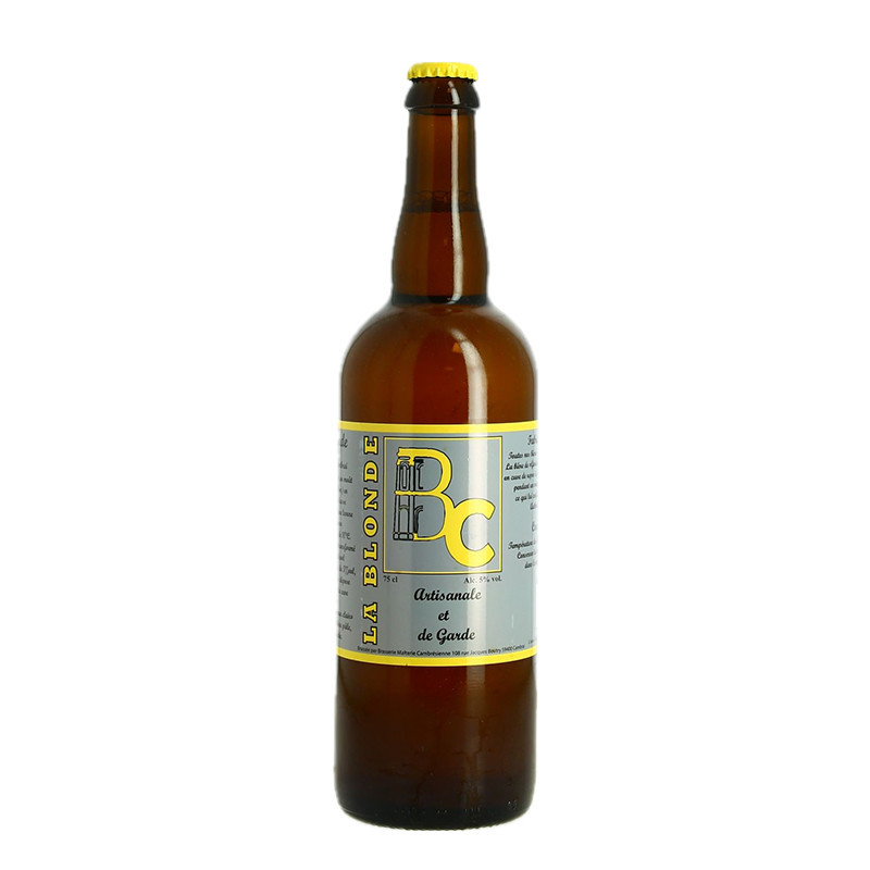 Bière Blonde de Cambrai, Bière de Garde Artisanale. This pale ale, typical of the North of France, combines golden malts and fine hops for aromas of honey, toast and dried fruit. With a moderate It is round on the palate, with a discreet bitterness and a slightly spicy finish. Its amber colour and gentle fizz make it a well-balanced beer for laying down.