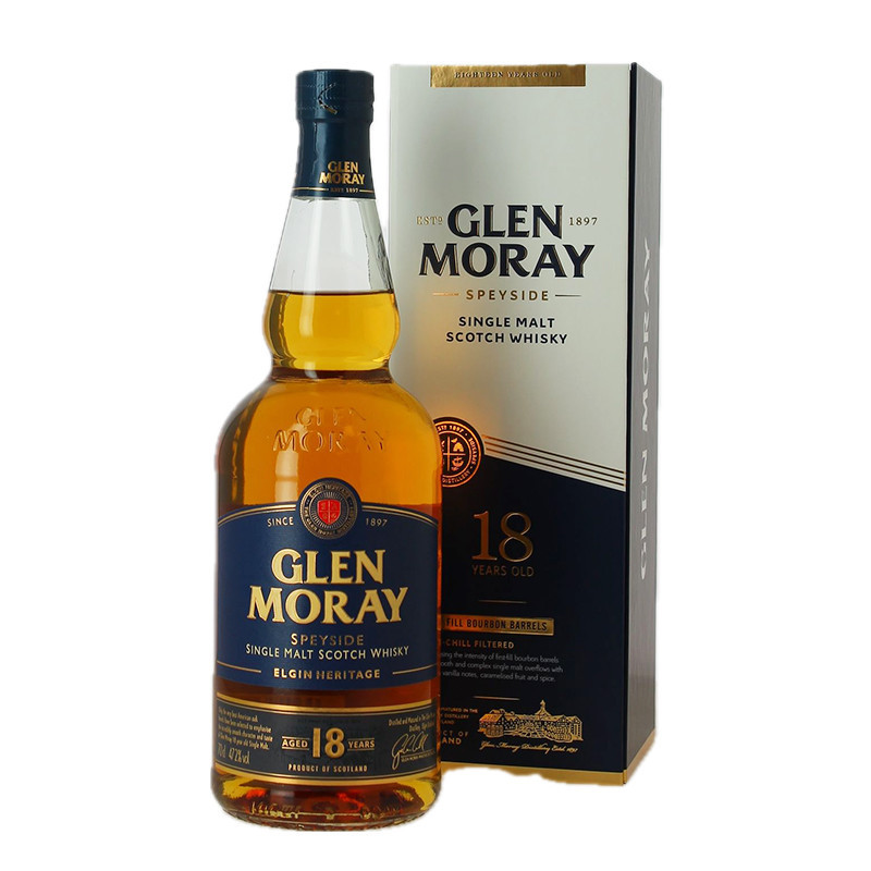 Founded in 1897, Glen Moray continues to uphold traditional expertise while innovating to create modern and accessible whiskies. This 18-year-old whisky is the result of meticulous ageing, with each cask carefully selected to bring depth and finesse. The Speyside region, known for its pure waters and mild climate, gives this whisky a natural smoothness and subtle complexity.