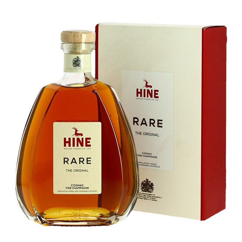 Cognac HINE Rare VSOP Carafe, This HINE Rare VSOP Cognac in carafe has notes of jasmine, acacia, vanilla, oak and fruit. Delicate, balanced and round on the palate. This Cognac is a blend of 25 brandy eaux-de-vie, of which more than 50% is from grapes harvested in Grande Champagne and the others in Petite Champagne, the two best cognac wines.
