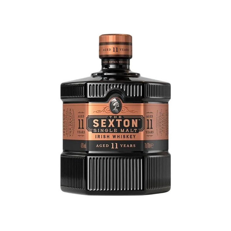 The Sexton 11 Year Old Single Malt 70 cl 43% ABV is an Irish single malt renowned for its rich flavour profile and approachability. Matured in sherry casks, it develops intense aromas of raisins, chocolate and vanilla, with a hint of spice on the finish. This flavour profile appeals to a wide audience, from enthusiasts to connoisseurs.