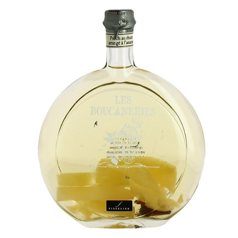 Rum punch pineapple prepared by Jacques Fisselier from rum from the French islands, quality and cut fruit, vanilla from Madagascar, cinnamon and cane sugar with a slow and careful maceration, punch at 18 ° in alcohol, can be enjoyed pure or accompanied by fruit juice, sparkling water or lemonade.