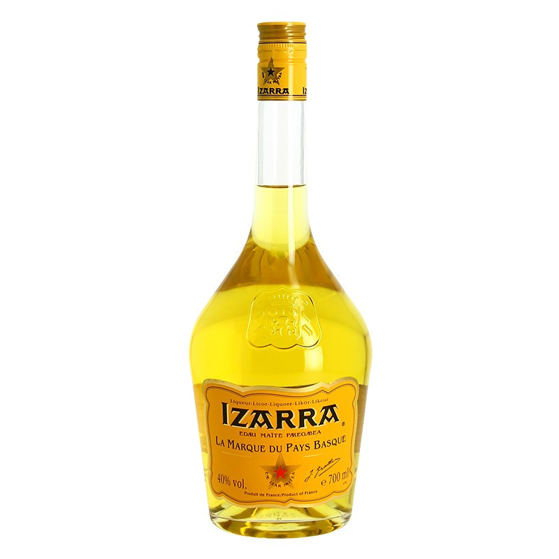 Izarra Yellow Liqueur from the Basque Country. Clear and brilliant, the yellow Izarra liquor has a vegetal nose where you can distinguish cinnamon, coriander and an aniseed touch. Smooth on the palate, vegetal and spicy notes blend on a background of sweet honey. The yellow Izarra is appreciated for this typical sweetness.