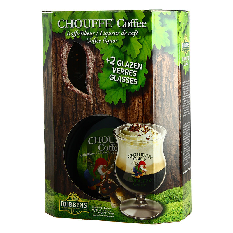 Chouffe Coffee is a liqueur made from Achouffe beer brandy and coffee extracts. This liqueur is of course produced in Belgium like the famous Chouffe brand beer. This coffee liqueur is now available in a box with 2 tasting glasses.
