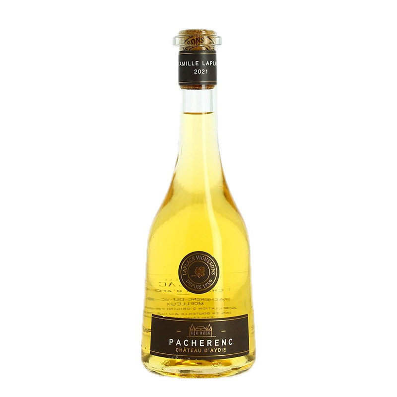 Château d'Aydie Pacherenc du Vic Bilh 2021 is an exceptional sweet white wine produced in south-west France by the Laplace family. Mainly made from Petit Manseng grapes, this wine has been carefully matured for 10 months in oak barrels, followed by a period in acacia barrels. Its brilliant yellow colour and aromas of honey and exotic fruit make it an ideal companion for desserts or sweet and savoury dishes. Round and balanced on the palate, with a lingering finish. This elegant sweet wine has been very well received by sweet wine lovers, who appreciate its complexity and finesse. Château d'Aydie, located in south-west France, is renowned for the quality of its wines, and this Pacherenc du Vic Bilh 2021 is no exception. It is available in 50 cl bottles, perfect for all occasions.