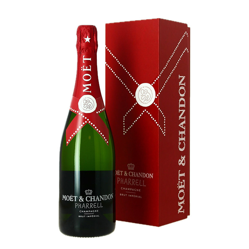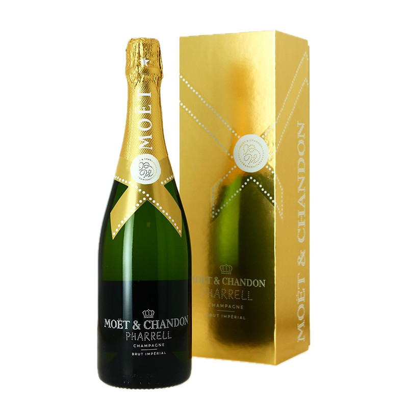 Moët & Chandon Pharrell Williams Special Edition champagne is a unique collaboration between the prestigious champagne house and visionary artist Pharrell Williams. This limited edition stands out for its bold design, with bottles adorned in vibrant colors such as midnight blue, gold, and intense red, embellished with Pharrell's signature in white pearls.