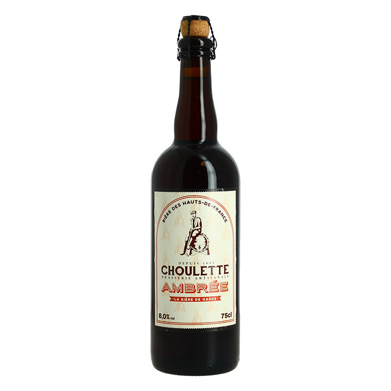 La CHOULETTE Amber French Beer 75 cl, The Choulette Ambrée Beer is brewed in the North more precisely in Hordain at the craft brewery "La Choulette"; This reddish beer with coppery reflections and rich in coffee and caramel aromas with a slight flavor of prunes. It is one of the first beers to have received the Gold Saveur Label.
