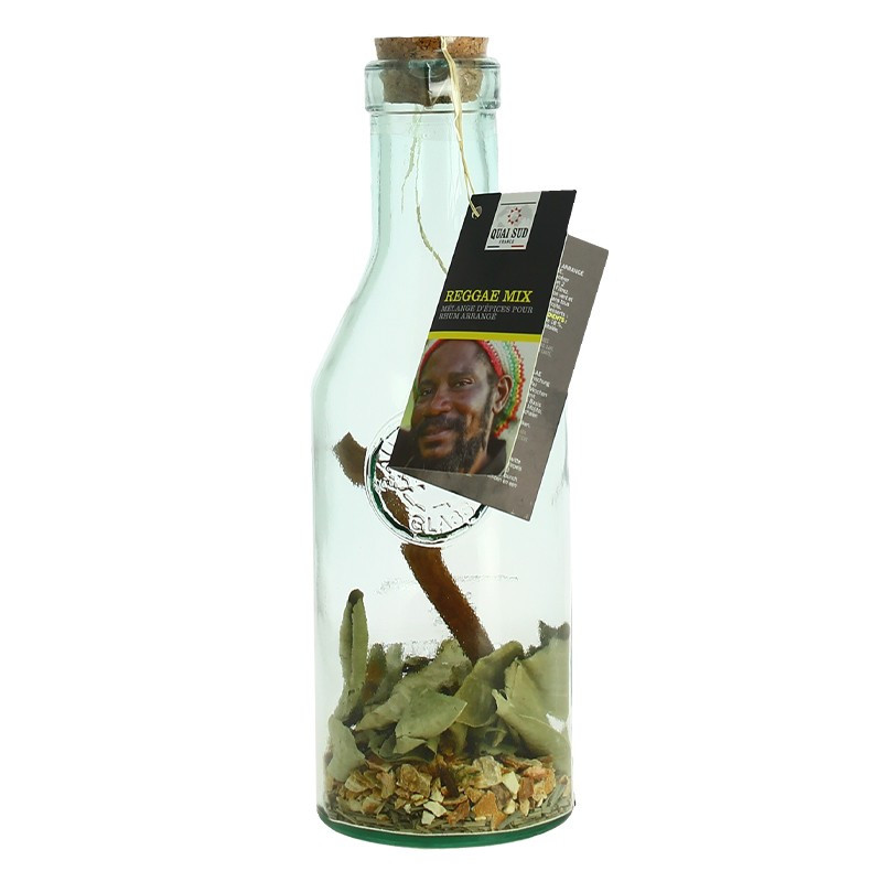 Reggae mix Quai Sud rum carafe mix. Ingredients: lemongrass, orange peel, cinnamon stick, lemon peel, vanilla pod, orange leaves, star anise, elderflower, clove. Directions for use: macerate for 3 weeks in 70 cl of white rum and 2 spoons of cane sugar or honey. Filter. Tasting: in a ti'punch, with 1/4 lime and a dash of cane sugar syrup, or in all rum cocktails: planter, mojito, piña colada ... Extra to flavor desserts: salads fruit, cannelés, babas ... Possible traces of nuts, sesame, mustard, gluten, milk, egg, soy, sulphites.