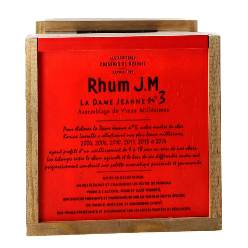 Please note: quantities are very limited for this version of JM's La Dame Jeanne No. 3. This agricultural rum, with its sugar cane and exotic fruit aromas accompanied by spicy notes, offers a rich taste experience. A rum highly sought after by connoisseurs.