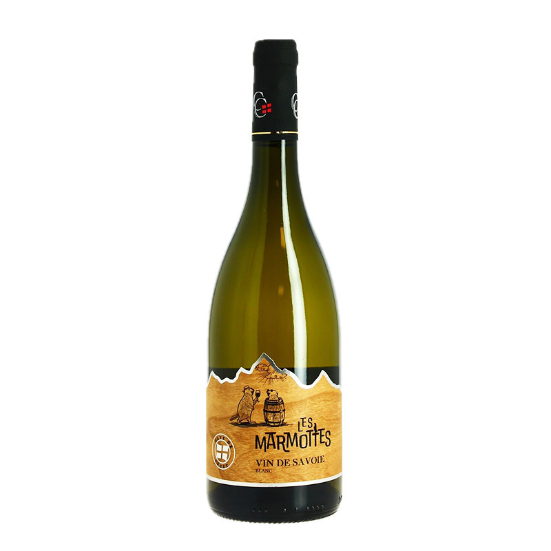 Les MARMOTTES BLANC" white wine from the Cave de CRUET is a Savoy delight. Made from Jacquère and Chardonnay grapes, this dry white wine has a pale yellow colour and aromas of white fruit and flowers. Ideal with seafood, Savoy cheeses and light dishes.