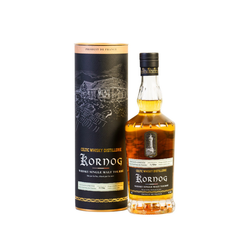 Kornog Whisky Finition Pineau 49.7° seduces with its aromas of malt, dried fruit and caramel, enriched by hints of Pineau des Charentes. On the palate, it is rich and balanced, with a long, lingering finish. The malt and caramel flavours blend harmoniously with the dried fruit and Pineau notes, creating a unique taste experience.