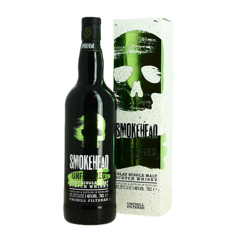 SMOKEHEAD UNFILTERED Islay Single Malt Scotch Whisky is a bold, smoky whisky with notes of smoke, peat and spice. This non-chill-filtered single malt is ideal for lovers of intense, peaty whiskies.