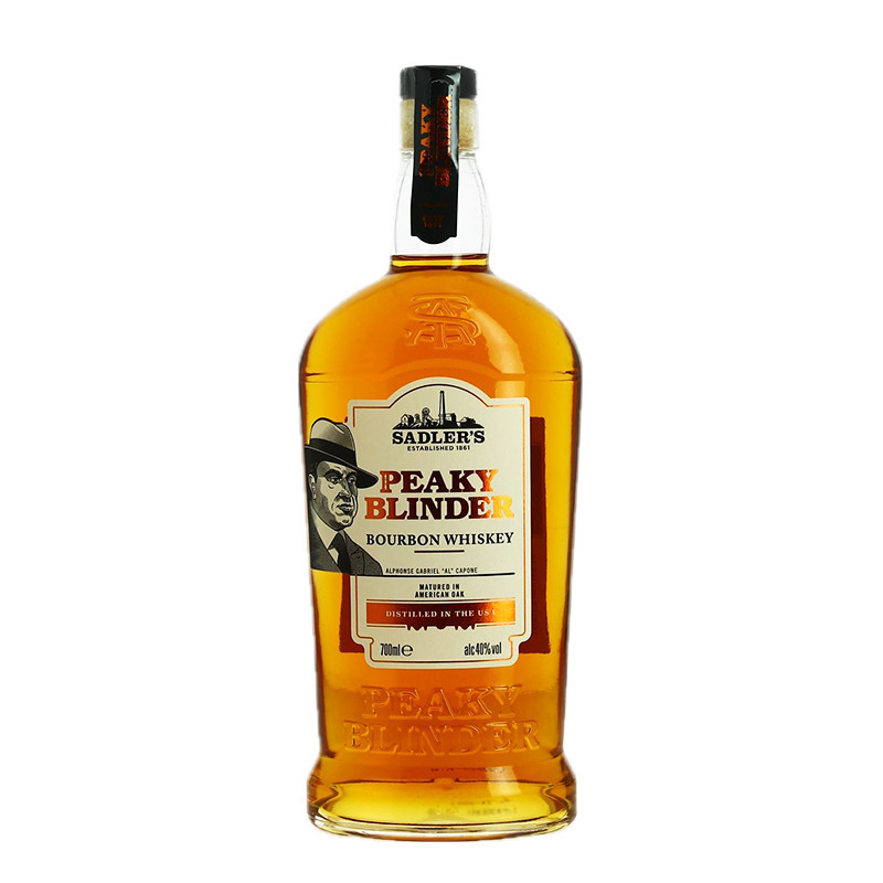 Peaky Blinder Bourbon is an American whiskey produced in Indiana, part of the range of spirits inspired by the famous TV series "Peaky Blinders". Produced by Sadler's, renowned in the UK since 1861 for its distribution of beers and spirits, this bourbon is aged for 2 years in new American oak casks.