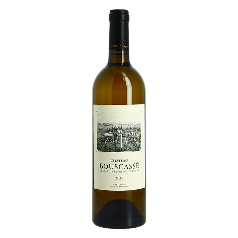 Château BOUSCASSE 2018 Les JARDINS PHILOSOPHIQUES by Alain BRUMONT, a dry and fruity white wine from the South West. This Pacherenc-du-Vic-Bilh Sec comes from the Petit Courbu and Petit Manseng grape varieties, it is vinified in vats after slow pressing. To maintain the freshness of the fruit, fermentation temperatures do not exceed 18° and aging is done on the lees with regular stirring to give flavor and body to this beautiful white wine.