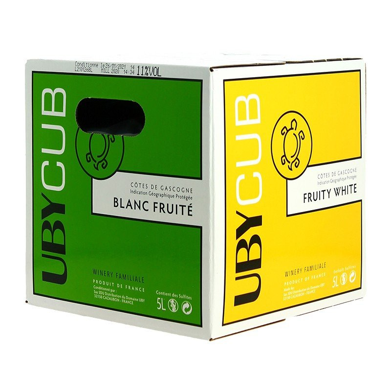 Uby presents its dry white wine blended from colombard, ugni blanc, gros menseng and sauvignon blanc. This wine, sold in 5-litre BIBs, has a citrus, white flower and exotic fruit flavour with liveliness and freshness on the palate. This dry white wine goes easily with aperitifs, salads, seafood or even seafood platters. Enjoy our UBY white in a 5-litre cuby!
