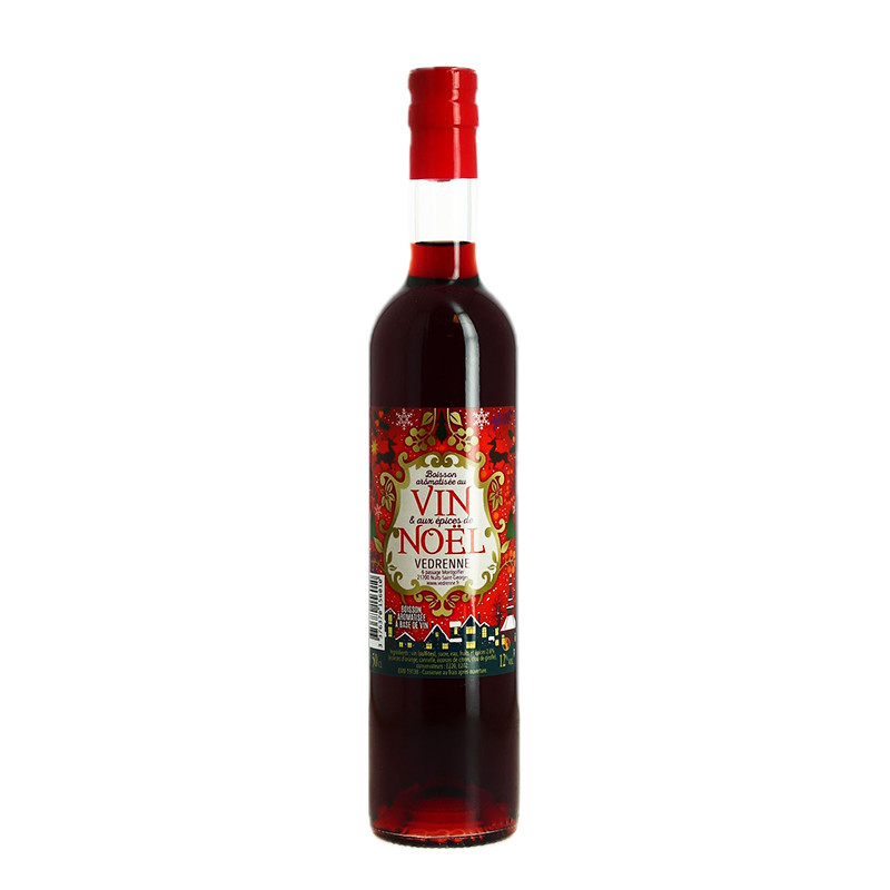 Boisson aromatisée au Vin et aux Epices de NOEL 50 cl par Vedrenne. This drink is made from wine, water, fruit and spices (1.4%) including orange peel, cinnamon, lemon peel and cloves.